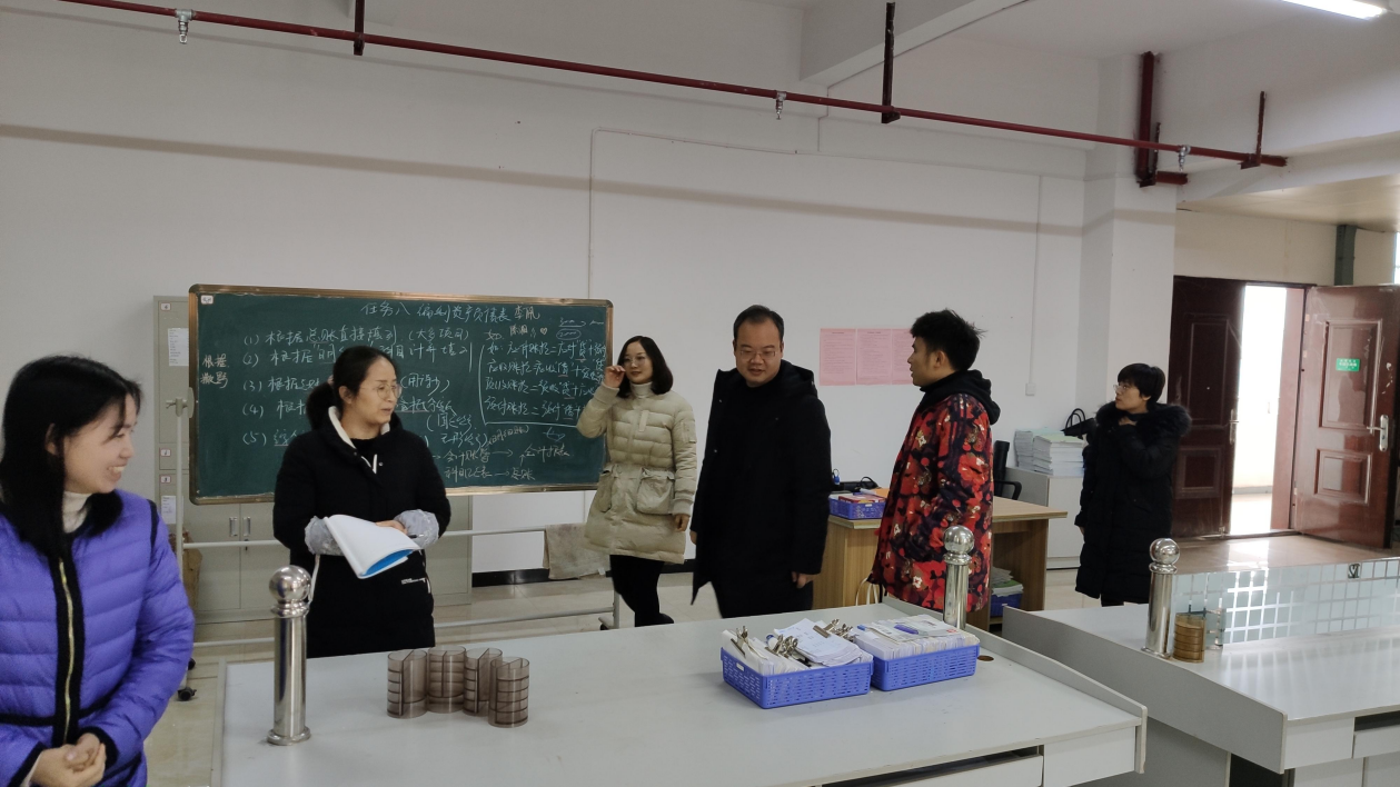2022年1月12日,实训中心联合系部开展了“安全大检查”活动,实训中心与系部副主任们领各教研室主任对烹饪实训室、面点实训室、酒店管理实训室、电子商务实训室、会计实训室和药品与经营管理实训室等进行了安全隐患排查。