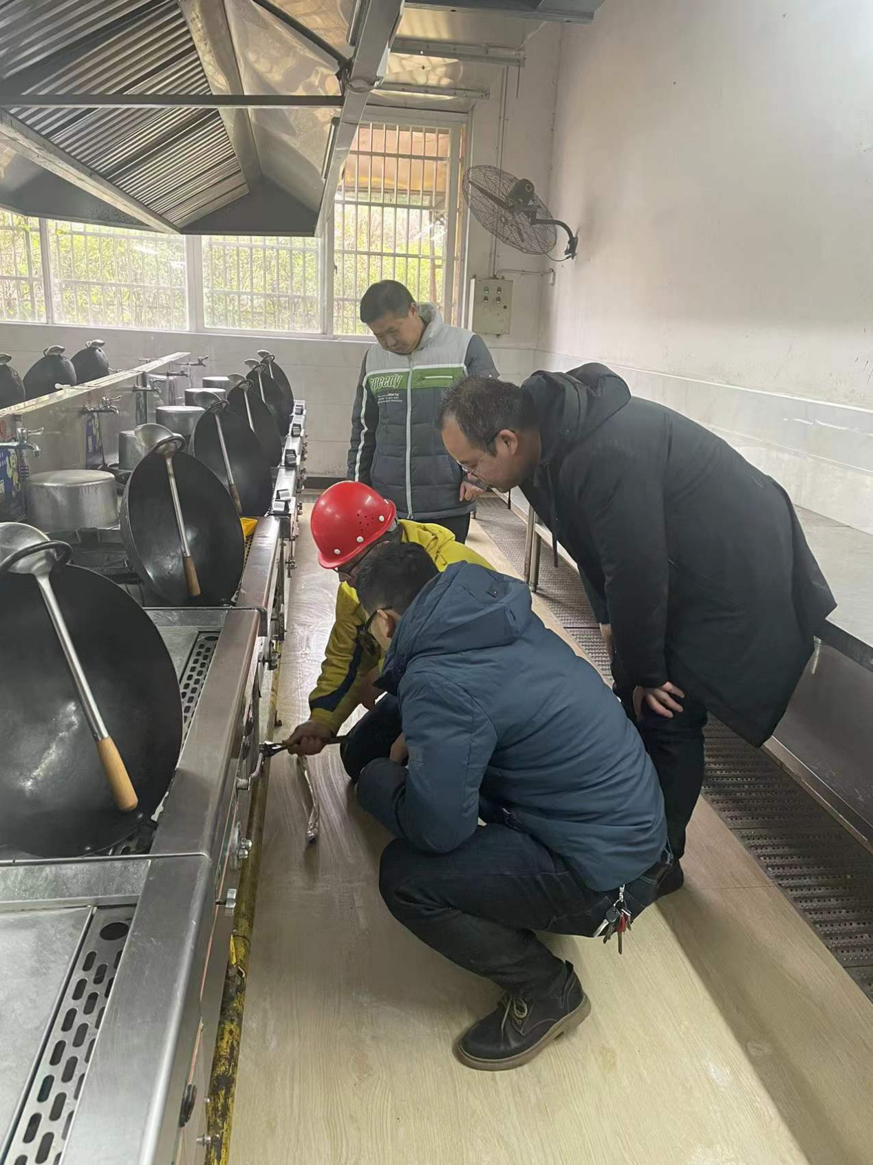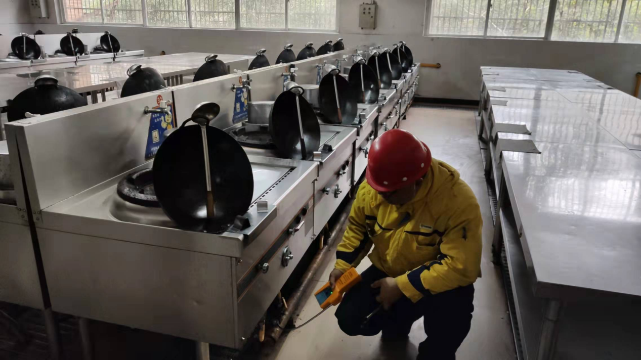 重点对烹饪实训室进行了安全检查,特别邀请了新奥燃气公司的工作人员对燃气安全进行的全面检查,检查过程中发现的问题已全部备案,并对损坏的气阀和管道进行的维修和上报,维修过后再次检测确认,确保系部过一个平安寒假。