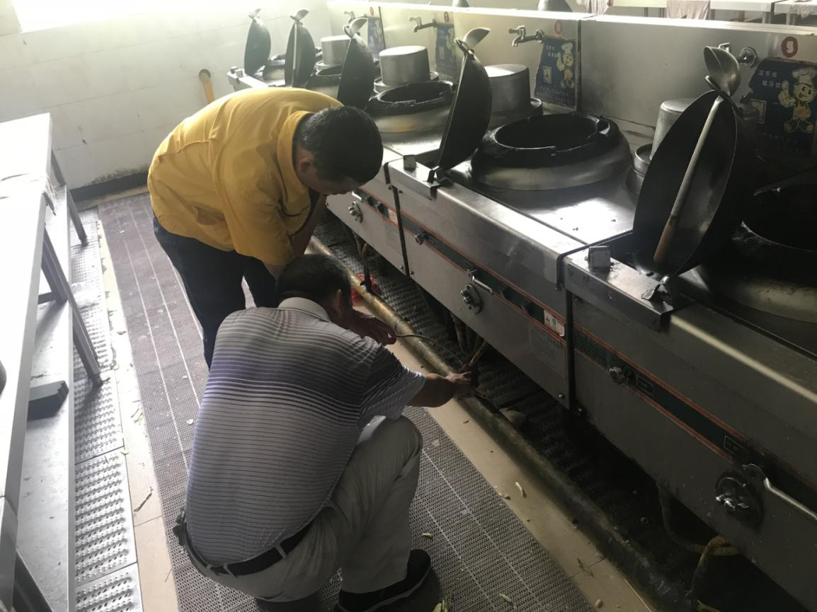 2021年6月16日星期三下午3点邀请新奥燃气公司的安全检察专家,协同学院后勤处及系部对管理系烹饪实训场地天然气使用情况进行了全面检查。在检查过程中发现烹饪实操室5号工位存在天然气泄漏风险,后勤处马上安排人员对漏气管道进行了更换,再次检查后已将风险排除。