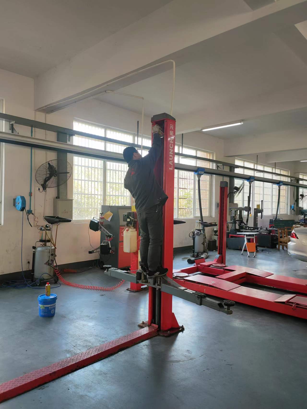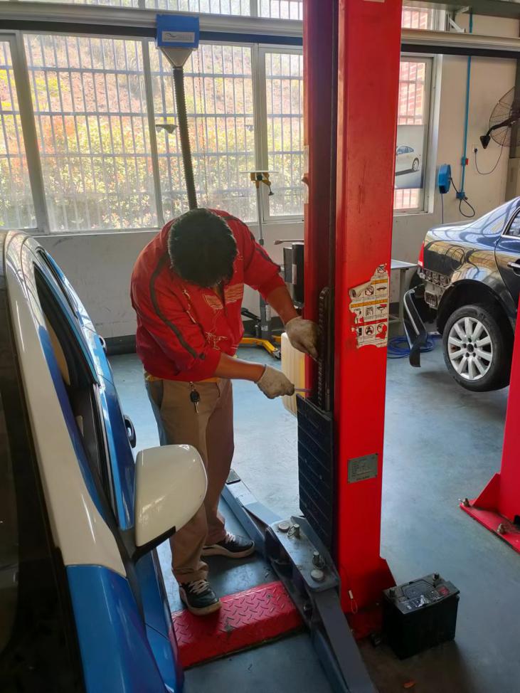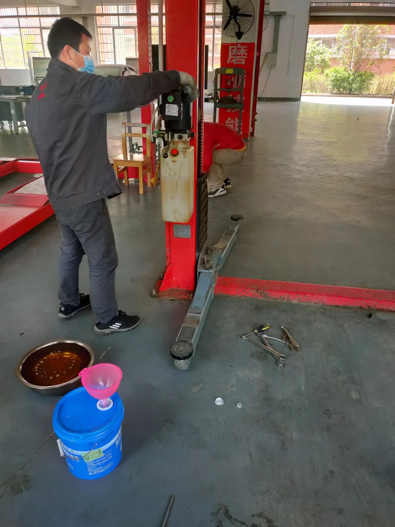 2022年4月初,为落实安全生产常态化管理的指示精神,根据举升机设备的保养规定,学院实训中心联系举升机售后服务机构会同系部专业老师对汽车工程系举升机进行了常规保养与维修,更换了举升机液压油、滑块,检查了弹簧、保险钩,托盘胶垫等重要部件。确保实训安全,避免实训时出现安全事故。