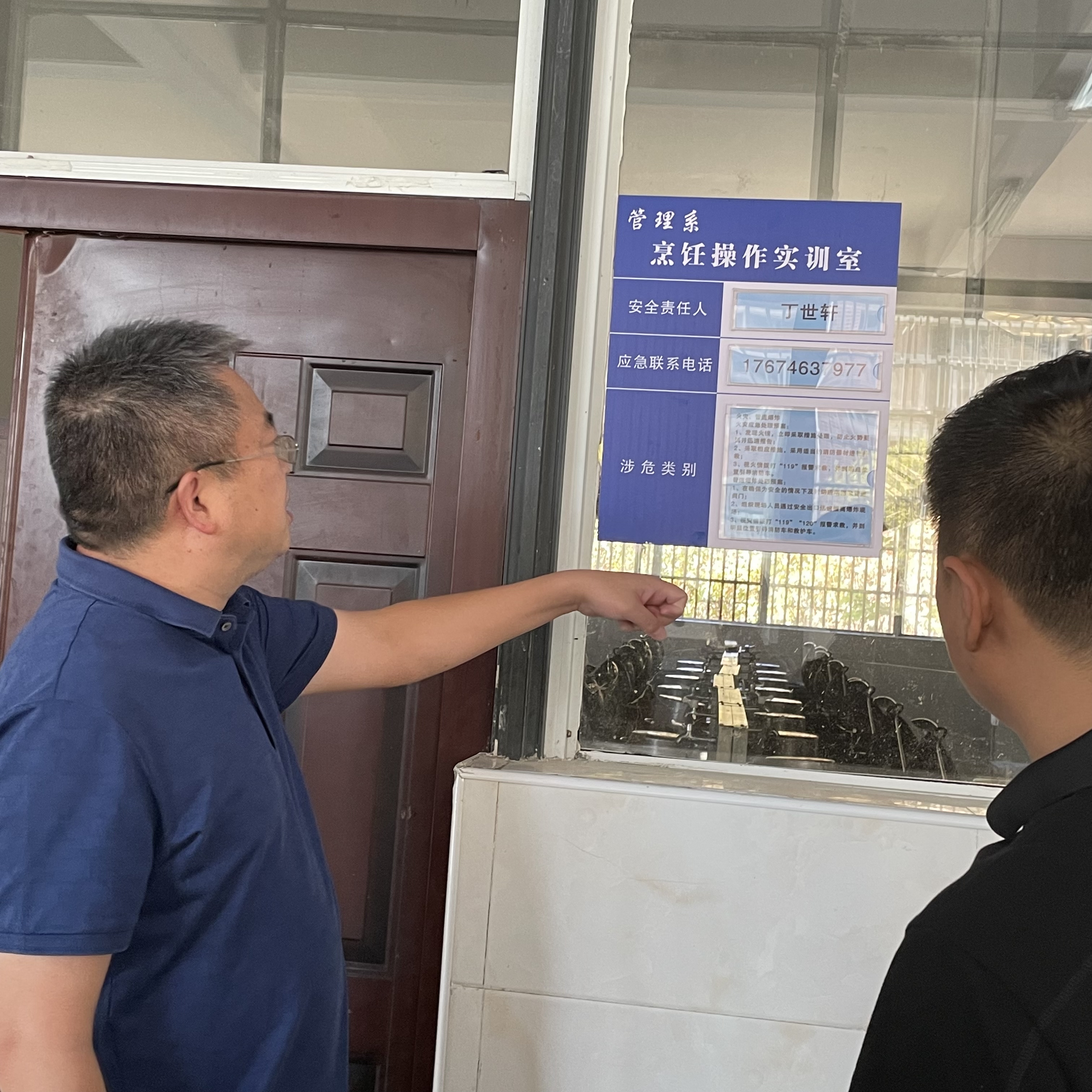 检查过程中,检查小组参照安全检查表中的相关要求对实训室消防、卫生、设备等情况进行了检查,发现存在部分消防栓缺少水带、水嘴,灭火器存在个别失效的情况。唐红星副院长强调,要重视消防安全,对于存在火灾隐患的实训室,例如烹饪场地,灭火毯等消防器材必须就近存放,实训室门外粘贴的应急预案内容应更具体,要有多级响应内容,安全责任人的信息及应急人员分工应更明确、更详细,才能更好的保障师生安全,在安全事故突发时迅速响应,减少损失。
