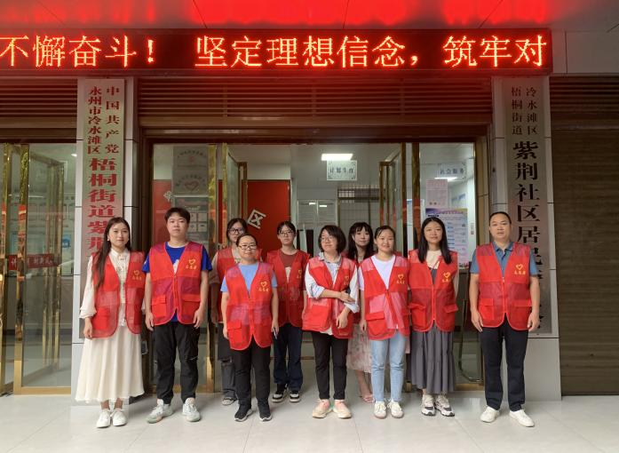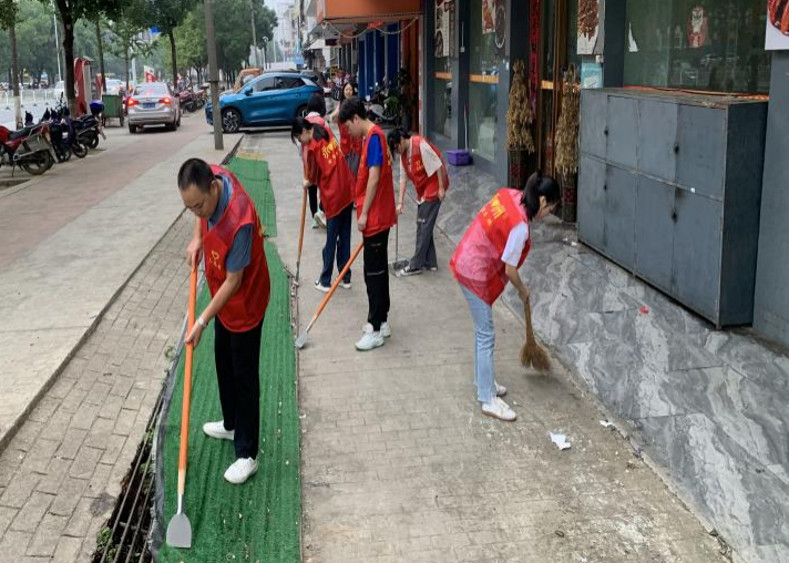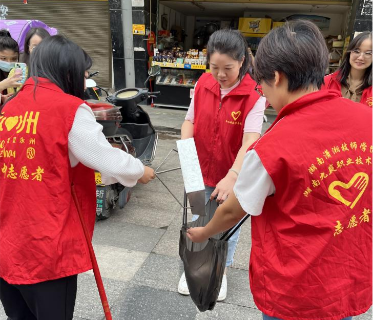 9月28日,支部副书记吴年飞带领顾瑶瑶、何怡帆、蒋敏、唐文芬、杨惠岚、贺婷、胡先雨、周燕慧、张灵,参加紫荆社区志愿者服务活动,清扫马路垃圾,为文明整洁永州做贡献。